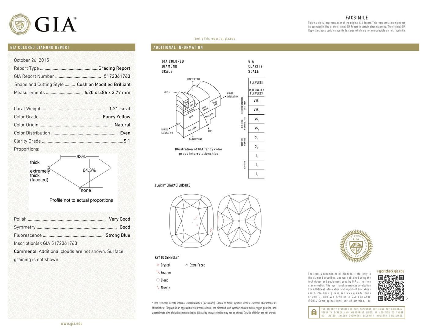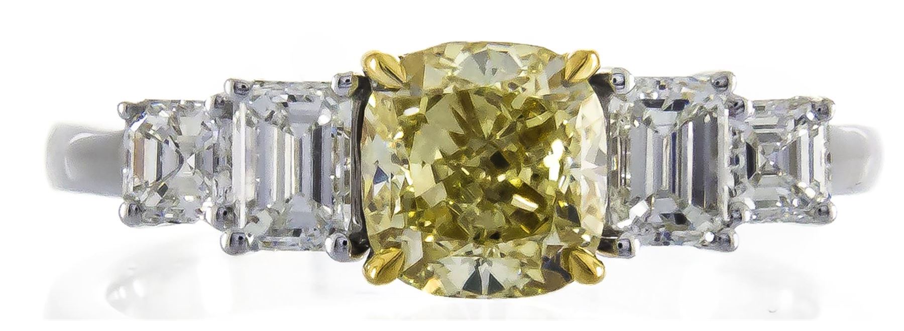 One ring featuring: 18KT Two-Tone Gold weighing 3.75 grams containing one radiant cut Fancy Yellow Diamond with a total weight of 1.21 ct and diamonds weighing a total of 0.80 ctw. GIA Appraised.