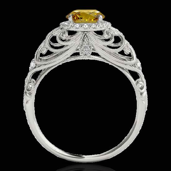 REF-236H4A -33785 ---- 1.22 CTW Certified Si/I Fancy Intense Yellow Diamond Solitaire Halo Ring 10K White Gold ---- Luxury Designer Brand Ring Appraised at $15,600 Certificate Number US33785 10k White gold, Ring Size is 7, Ring measuring approx. Uniform, weighing in total approx. 6.2 grams. Made in the USA and is stamped 10k, Main stone 1 carat total weight containing 1 pieces of Intense Fancy Yellow color with SI quality Round shape cut Diamond , Stone #2 0.22 carat total weight containing 28 pieces of H-I color with VS/SI quality Round shape cut Diamond