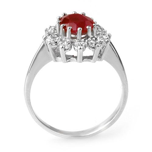 1.22 CTW Ruby & Diamond Ring 18K White Gold ---- Luxury Designer Brand Ring Appraised Retail Price at $2,850 ---- SKU Number US12513 18k White gold Ring Size is 6.75, Ring measuring approx. 7/16" x 7/16" , weighing in total approx. 4 grams. Made in the USA and is stamped 18k, Main stone 1.11 carat total weight containing 1 pieces of Mid-Opaque-Deep Red color with AAA quality Oval shape cut Ruby , Stone #2 0.11 carat total weight containing 12 pieces of H-I color with VS/SI quality Round shape cut
