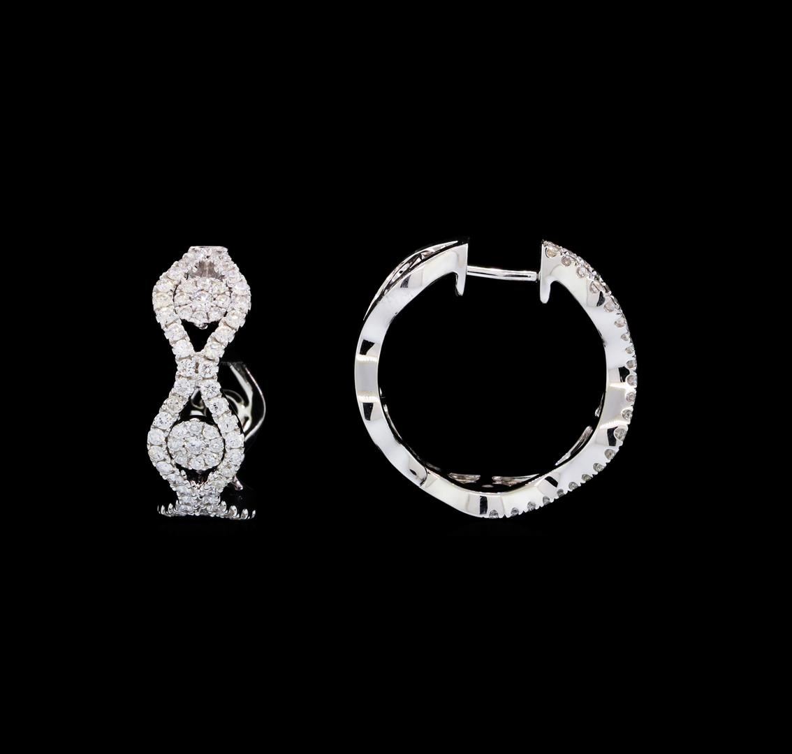 One pair of hoop earrings featuring: 14KT white gold weighing 5.4 grams containing diamonds weighing 1.22ctw.