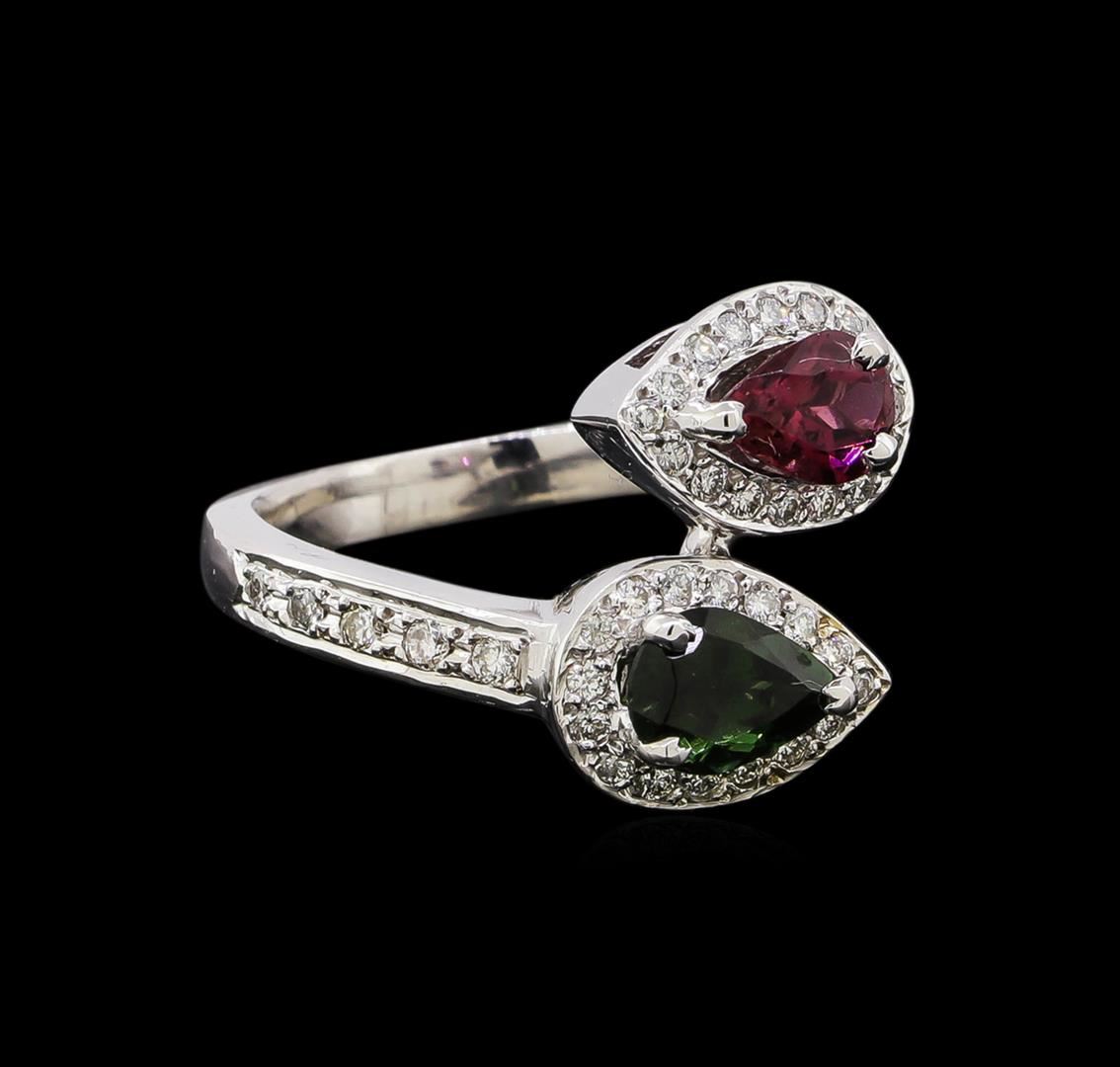 One ring : 14KT white gold weighing 7.73gm containing one pink topaz stone with a total weight of 1.22ct. and diamonds weighing 0.40ctw.