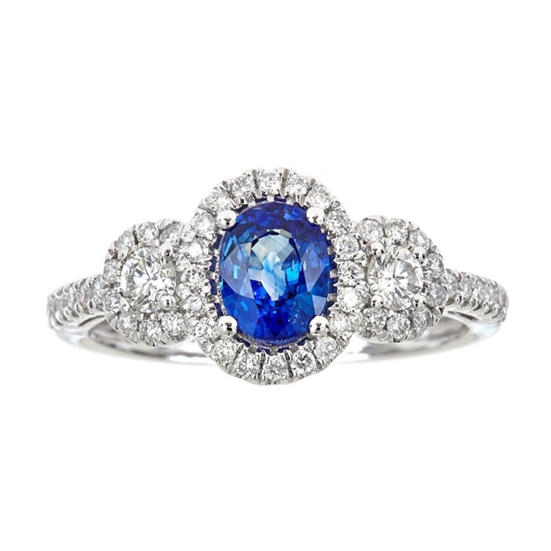 One Ring : 14KT white gold weighing 2.97gm containing one blue sapphire center stone with a total weight of 1.22ct and side diamonds weighing 0.53ctw.