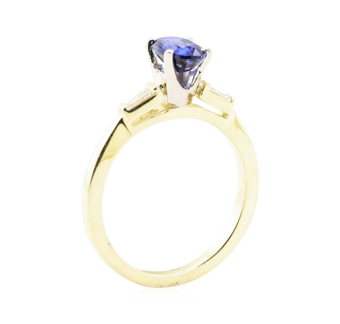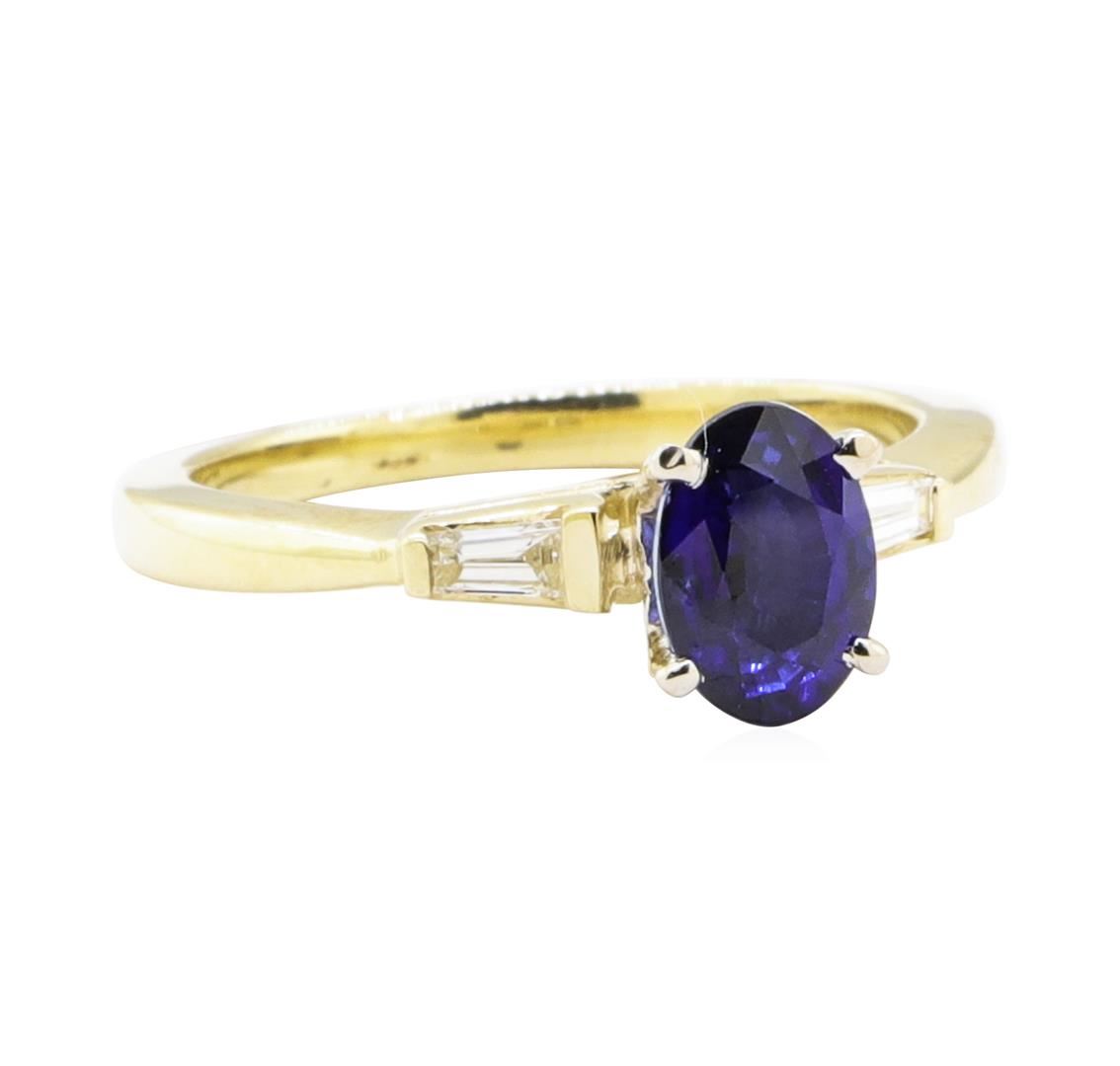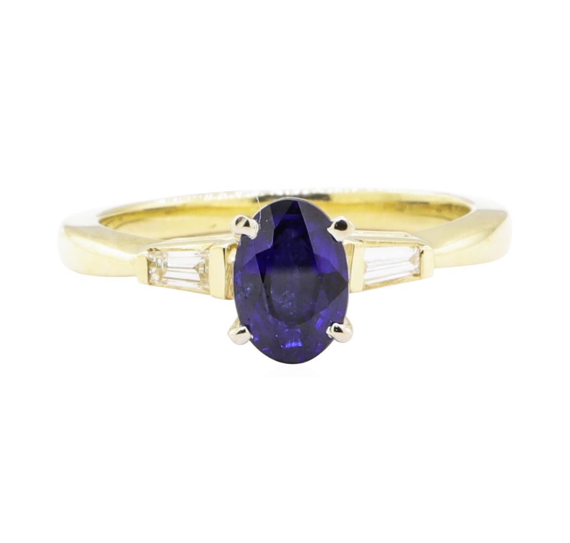 One ring featuring: 14KT yellow gold weighing 3.2 grams containing one sapphire weighing 1.02ct and diamonds weighing 0.20ctw.