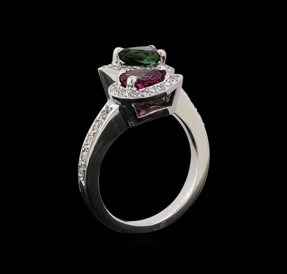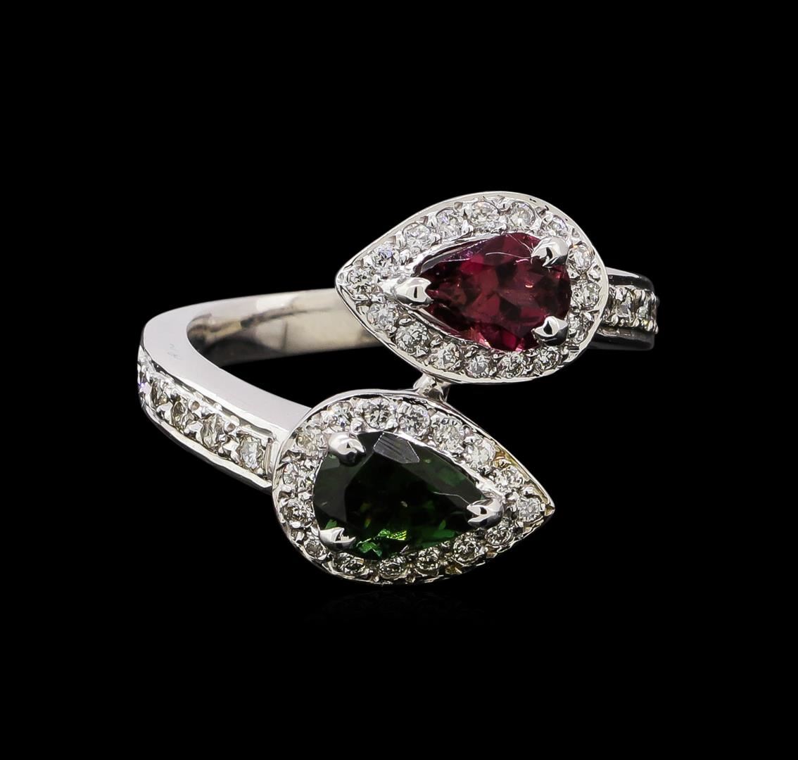 One ring : 14KT white gold weighing 7.73gm containing two tourmaline stones with a total weight of 1.22ct. and diamonds weighing 0.40ctw.