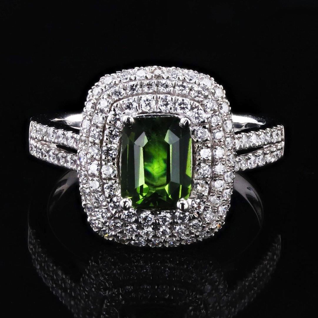 Platinum Green Sapphire & Diamond Ring One polished, stamped, and tested platinum ring marked Sheffield & Sons. The ring is mounted with: 1 genuine GIA certified unheated sapphire center stone weighing 1.22 carats, and 152 genuine round diamonds weighing approximately 0.88 carats. This item weighs 7.8 grams, condition is new, excellent workmanship. *MAIN GEMSTONE* GIA Report No.: 5221267694; Species: Natural Corundum; Variety: Natural Sapphire; Shape: Octagonal; Cutting Style: Step Cut; Measurements: 7.18 x 5.45 x 3.13mm; Weight: 1.22 carats; Color: Yellowish Green; Transparency: Transparent; Treatment: None; Refractive Index: 1.762 - 1.770 DR; Birefringence: 0.008 - 0.010; Hardness: 9; *ADJACENT GEMSTONES ON RING* Identity: Natural Diamond; Shape: Round; Cutting Style: Brilliant Cut; Quantity: 152 Diamonds; Measurements: 1.1mm; Total Weight: 0.88 carats; Clarity Grade: VS2 - SI1; Color Grade: G - H; Refractive Index: 2.418; Hardness: 10 #Size: 6.75