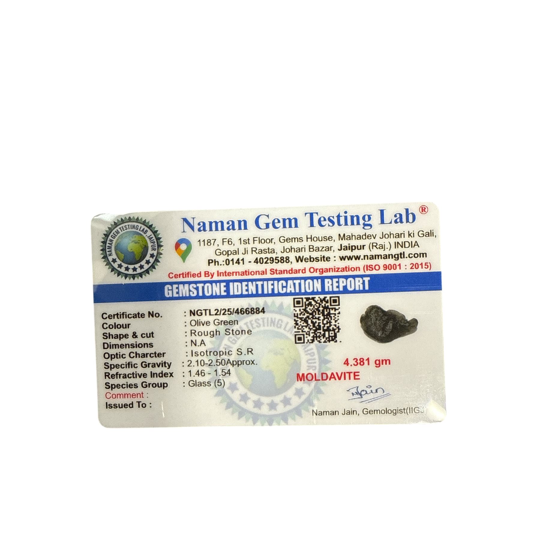 1.22 inch Moldavite 4.381 gms