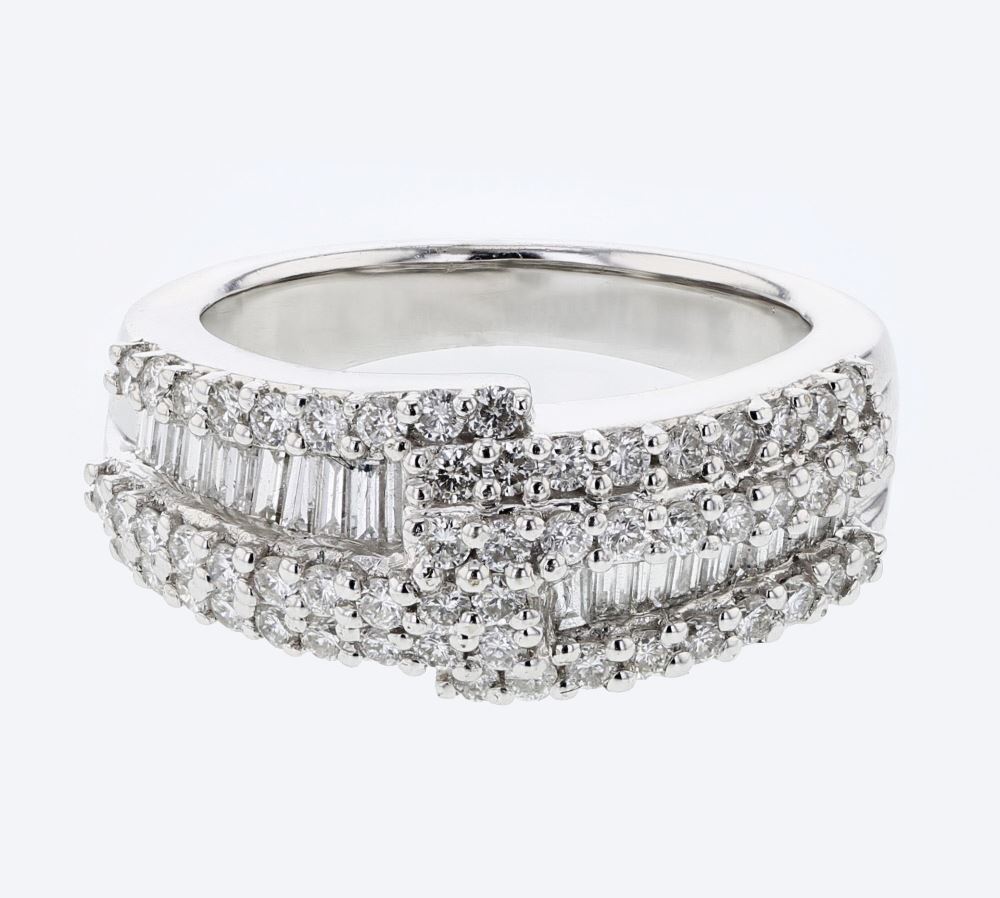 REF-148Y2X - JF223297 ---- 1.23 CTW White Round Diamond & Baguette Ring 18K White Gold
