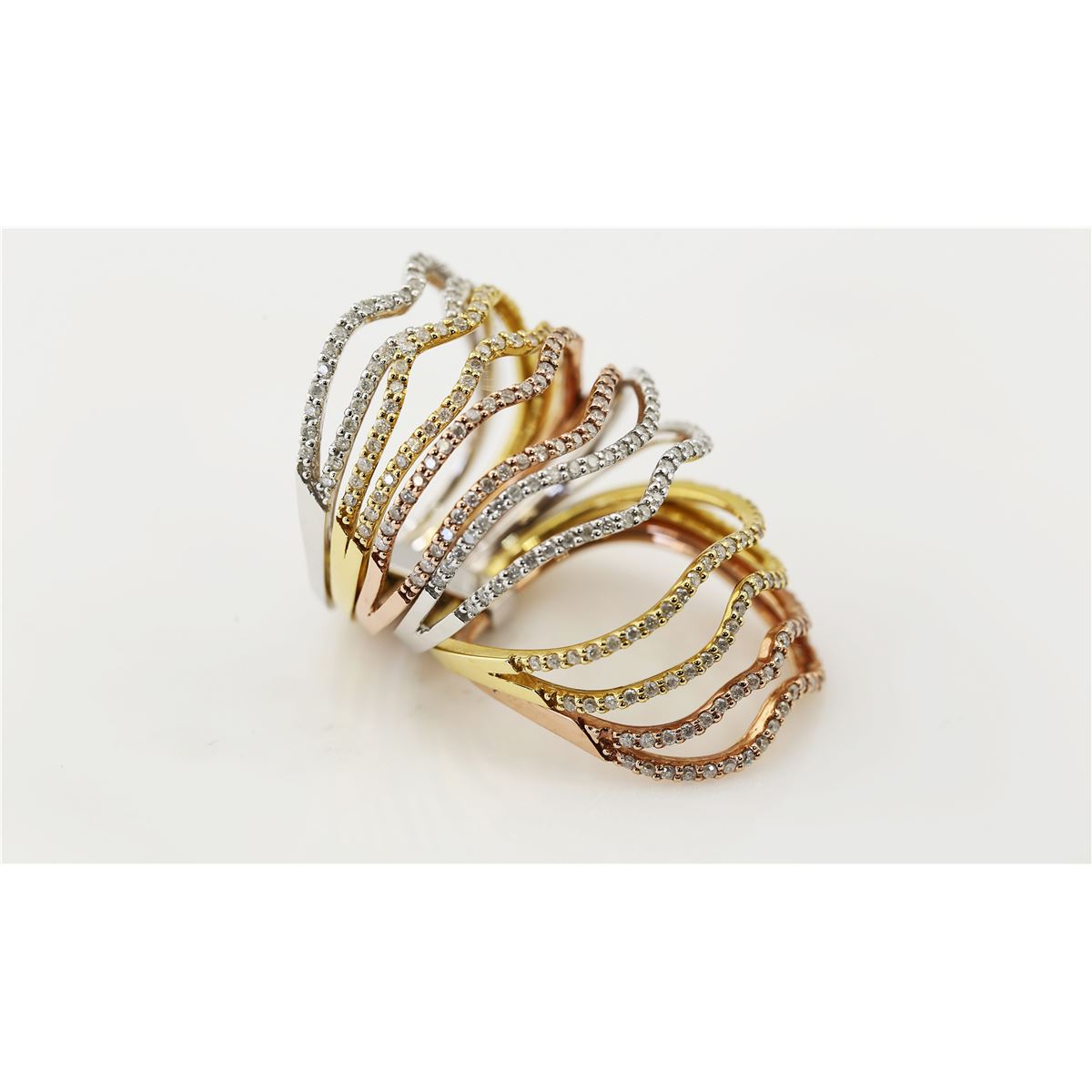 14K GOLD TRI COLOR DIAMOND DESIGNER RING - LQ/Diamond Count 1:/Diamond Total Carat :1.23/Diamond Color & Clarity:G-H /SI1-SI3/Diamond Count 2:/Diamond 2 CTW:/Diamond Count 3:/Gemstone Count 1:/Gemstone CTW:/Gemstone Dimension:/Gemstone Shape:/Gemstone Count 2:/Gemstone Shape:/Ring Dimension:/Metal Type 1:14kMulti Color :Gram Weight:13.13/Metal Type 2:/ Weight Gram:/Gross Weight :13.79/Ring Size:7