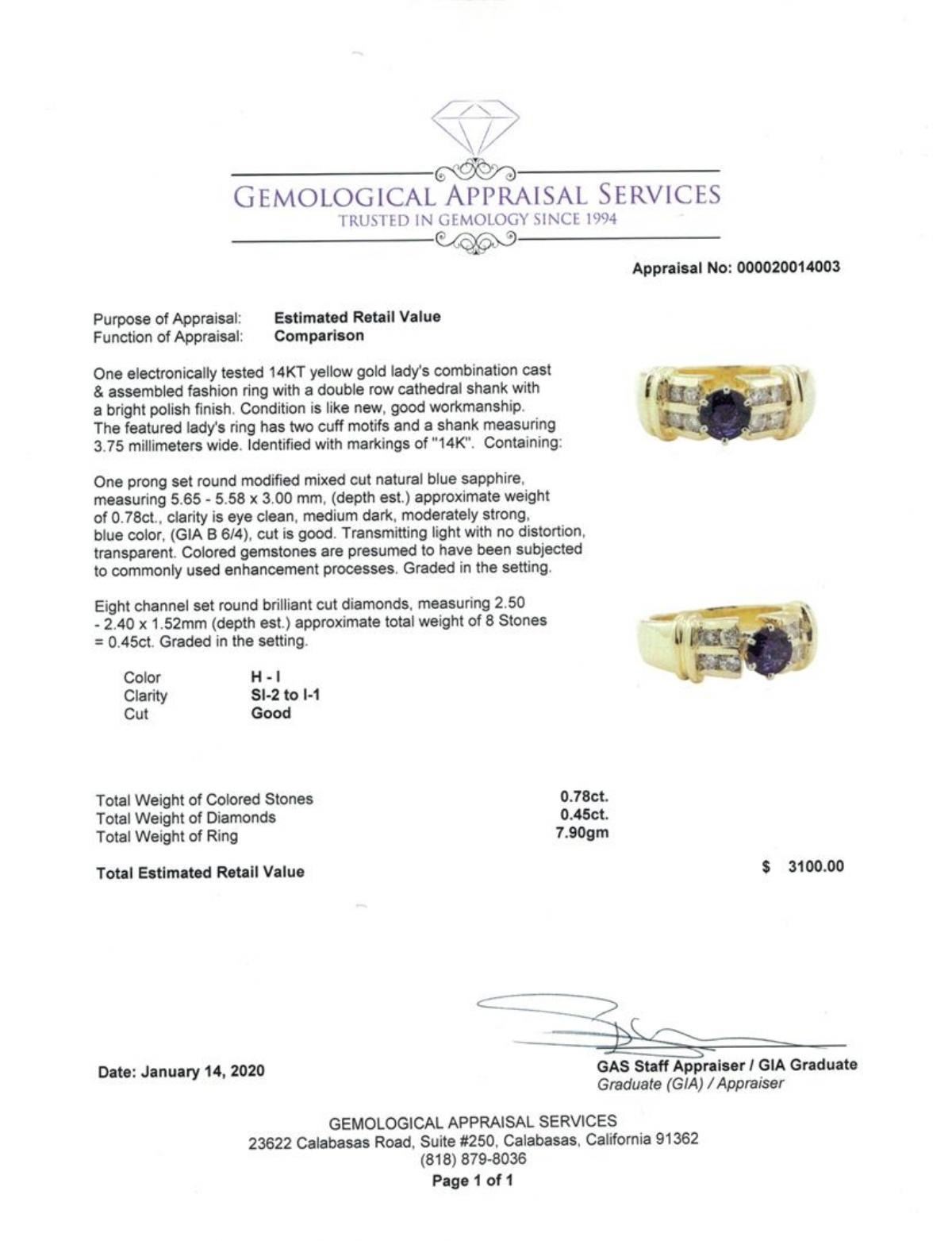One electronically tested 14KT yellow gold lady's combination cast & assembled fashion ring with a double row cathedral shank with a bright polish finish. The featured lady's ring has two cuff motifs and a shank measuring 3.75 millimeters wide. Identified GAS Appraised at $3,100.00.