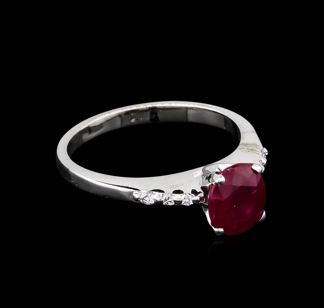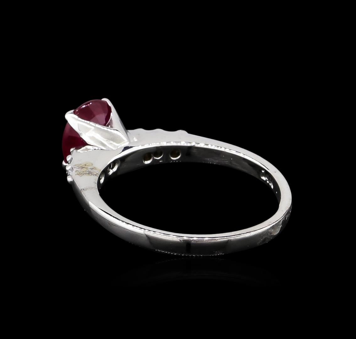 One ring featuring: 14KT white gold weighing 2.30 grams containing one ruby with a total weight of 1.23ct and side diamonds with a total weight of 0.05ct.