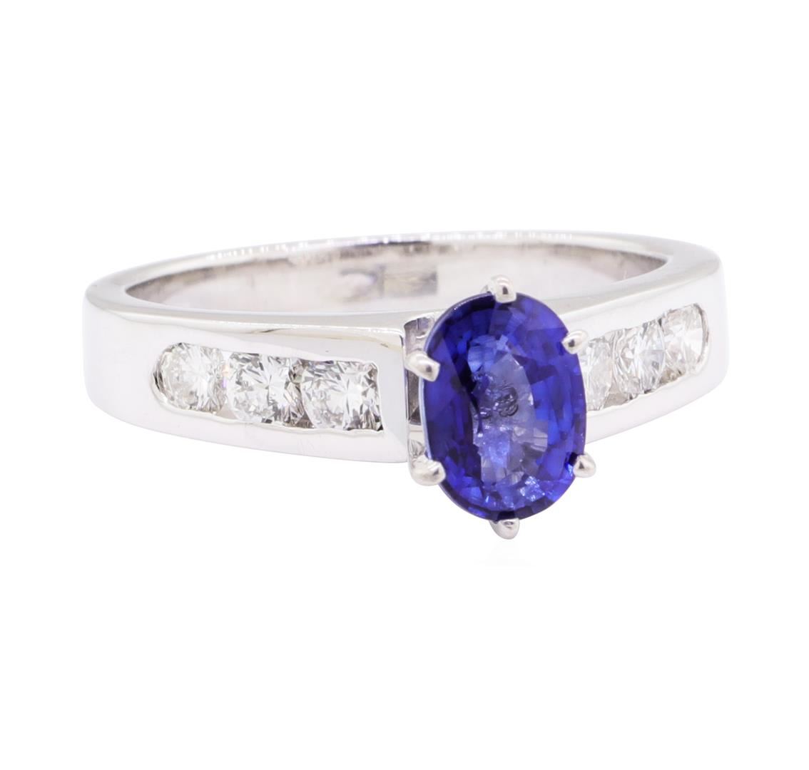 One ring featuring: 14KT white gold weighing 4.4 grams containing one blue sapphire weighing 1.23ct and diamonds weighing 0.50ctw.