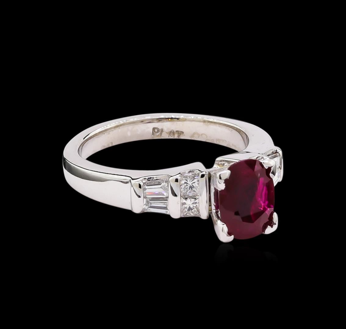 One ring featuring: 18KT white gold weighing 9.72 grams containing one ruby with a total weight of 1.23ct and side diamonds with a total weight of 0.50ct.