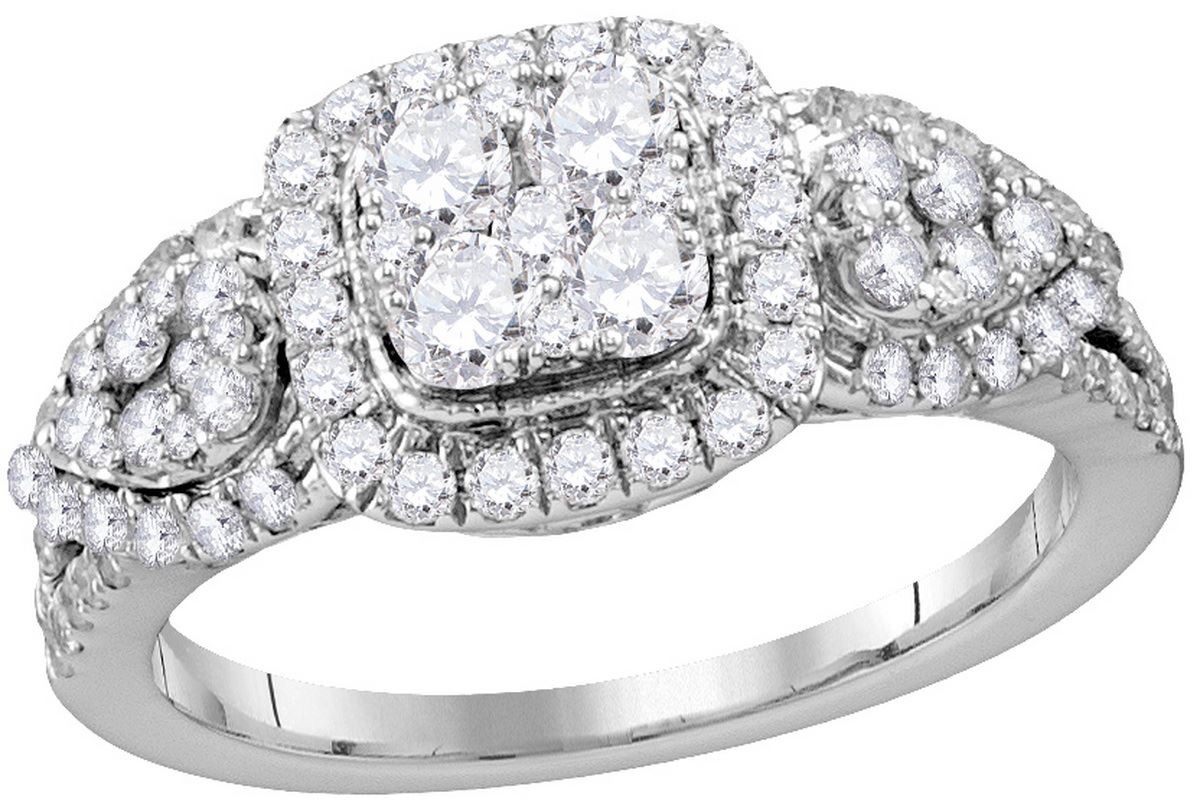 REF-119K9W ---- 1.24 CTW Natural Diamond Square Halo Cluster Ring 10K White Gold - SKU: GD111848