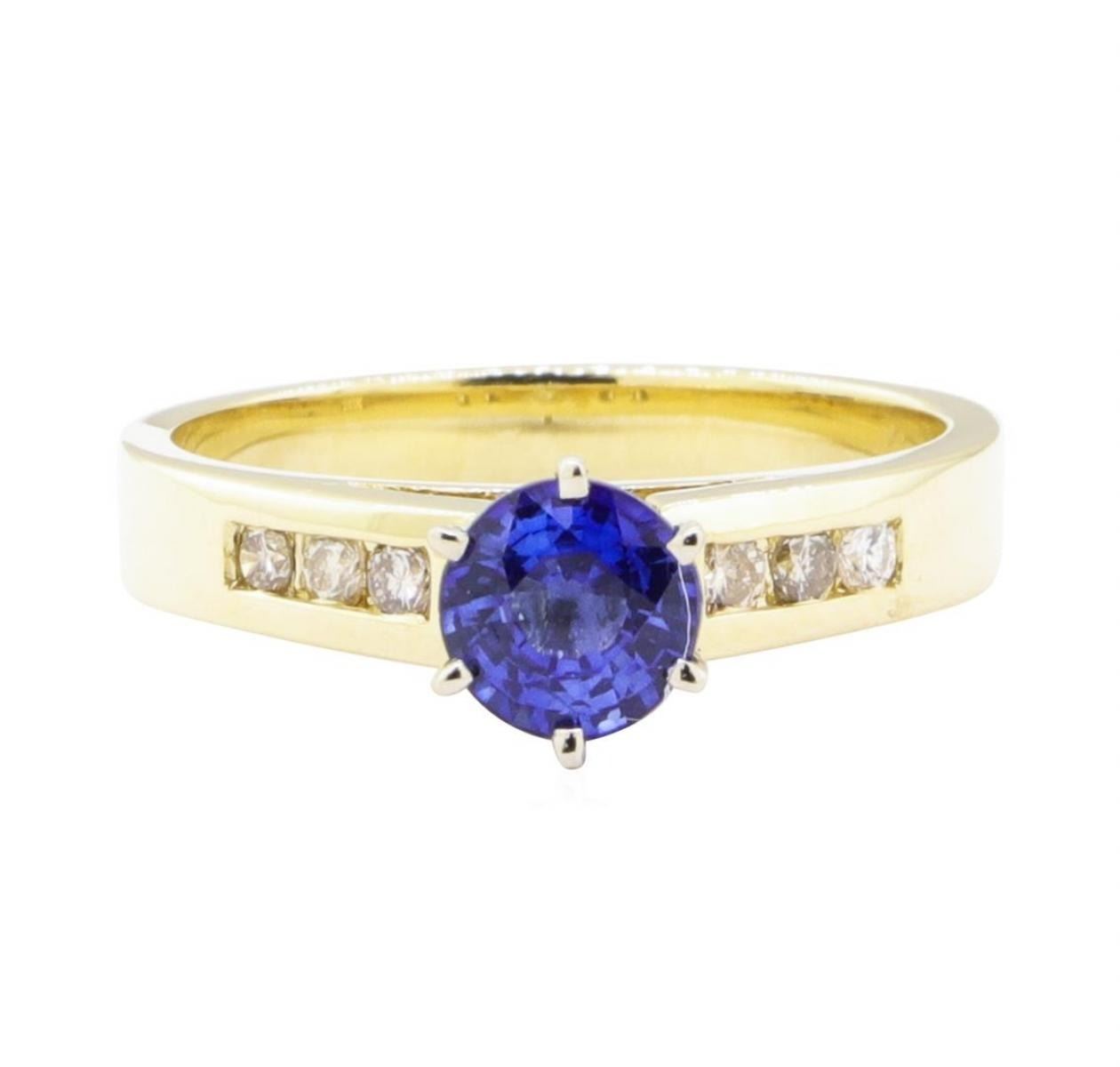 One ring featuring: 14KT yellow gold weighing 3.9 grams containing one sapphire weighing 0.94ct and diamonds weighing 0.30 ctw.
