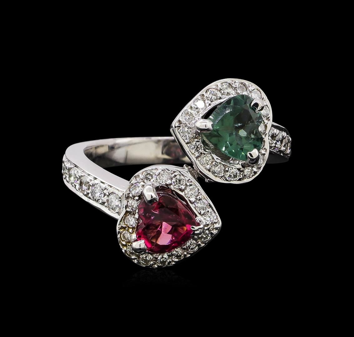 One ring : 14KT white gold weighing 8.07gm containing two tourmaline stones with a total weight of 1.24ct. and diamonds weighing 0.46ctw.