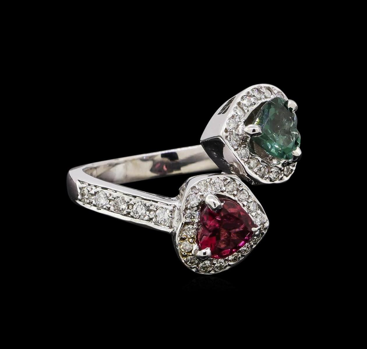 One ring : 14KT white gold weighing 8.07gm containing two tourmaline stones with a total weight of 1.24ct. and diamonds weighing 0.46ctw.