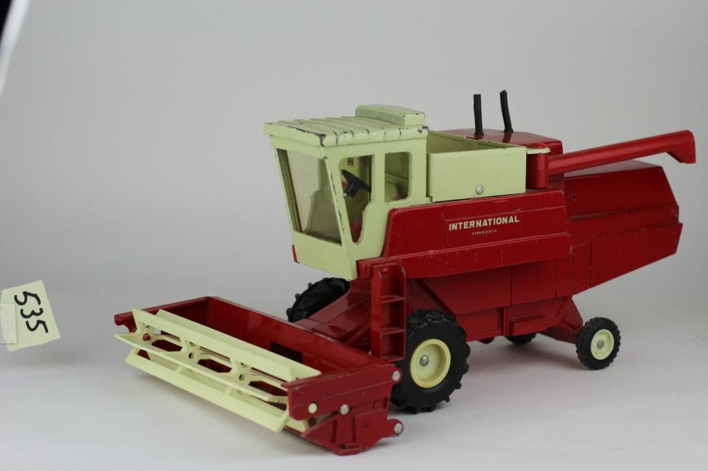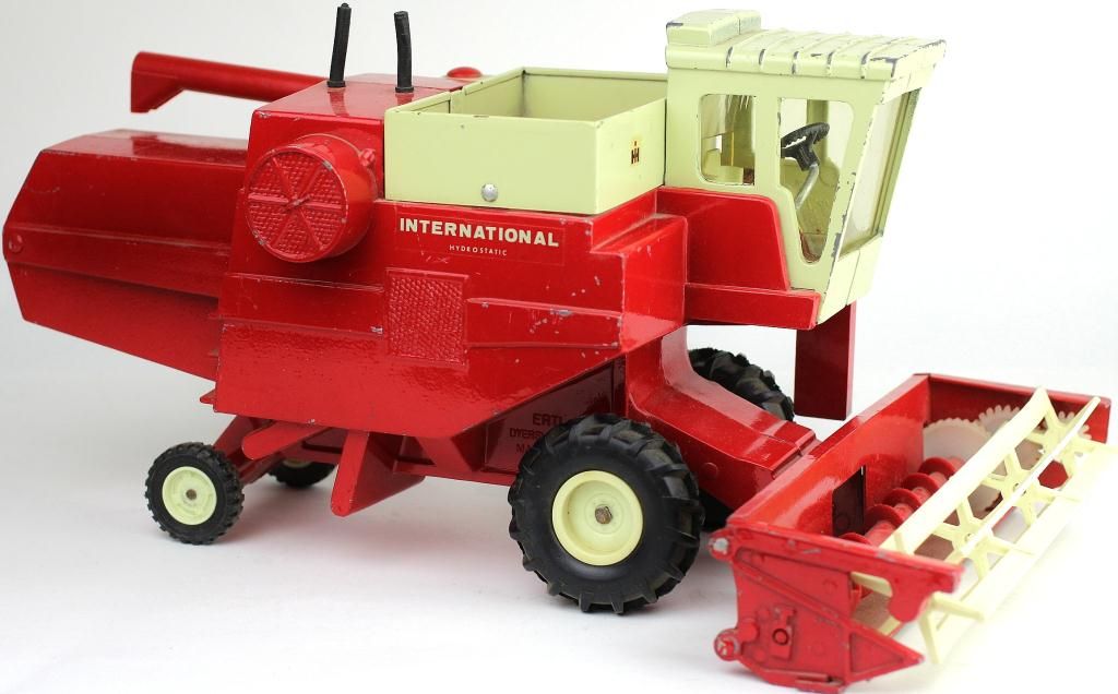 1/24 scale 1960's International Combine, 915, 14" long showing very good original condition with silver steering wheel column and duel exhaust stacks. Est. 75-175