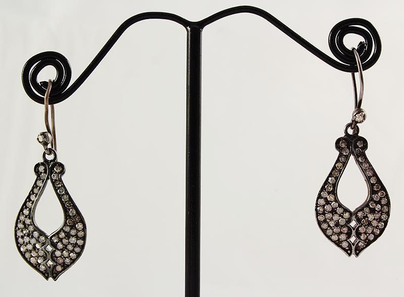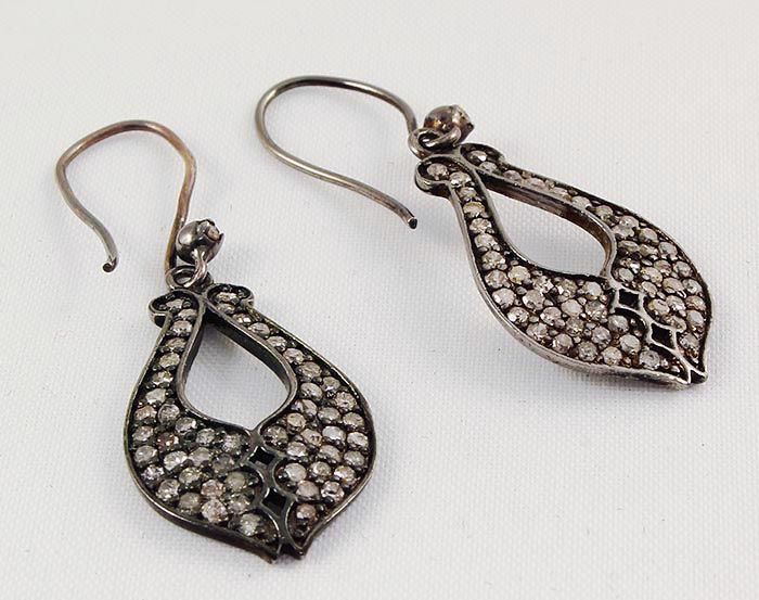 1.24CT FANCY DIAMOND VICTORIAN SILVER JEWELRY 3.5g **|**|** 1.60 INCHES LONG FANCY DIAMOND SILVER MICRO-PAVE DESIGNER HANDMADE HOOK EARRING ; MSRP: $500