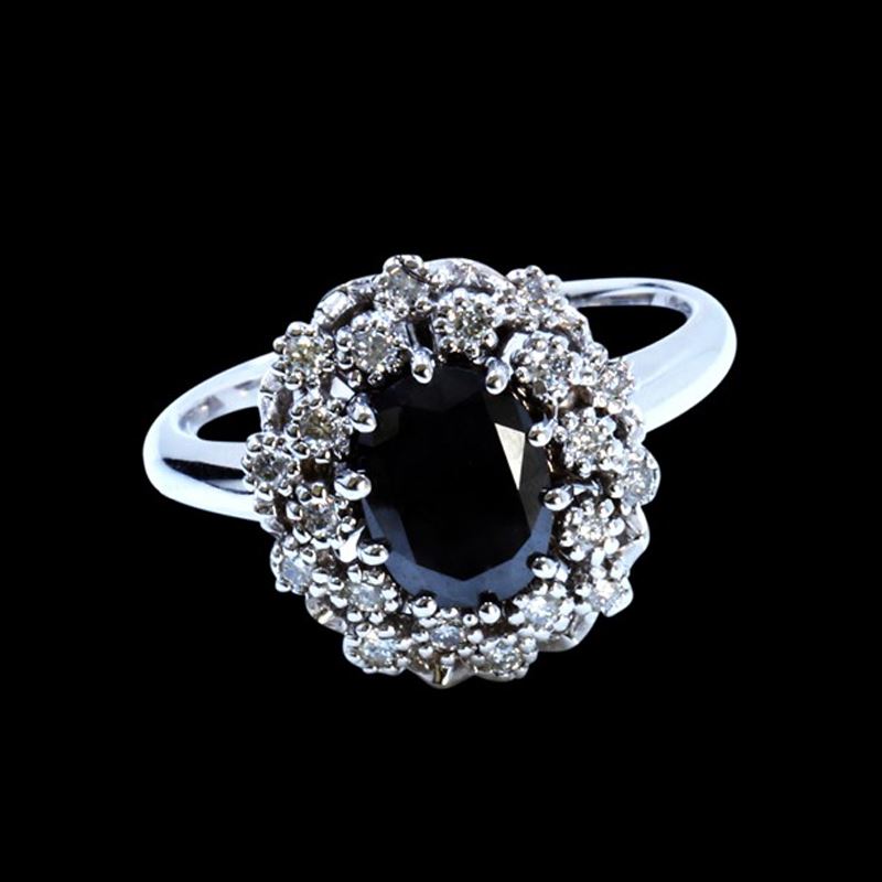 14K WHITE GOLD TREATED BLACK DIAMOND RING:5.07 GRAMS/DIAMOND:0.29CT/TREATED BLACK DIMAOND:1.24CT/#GVR1072
