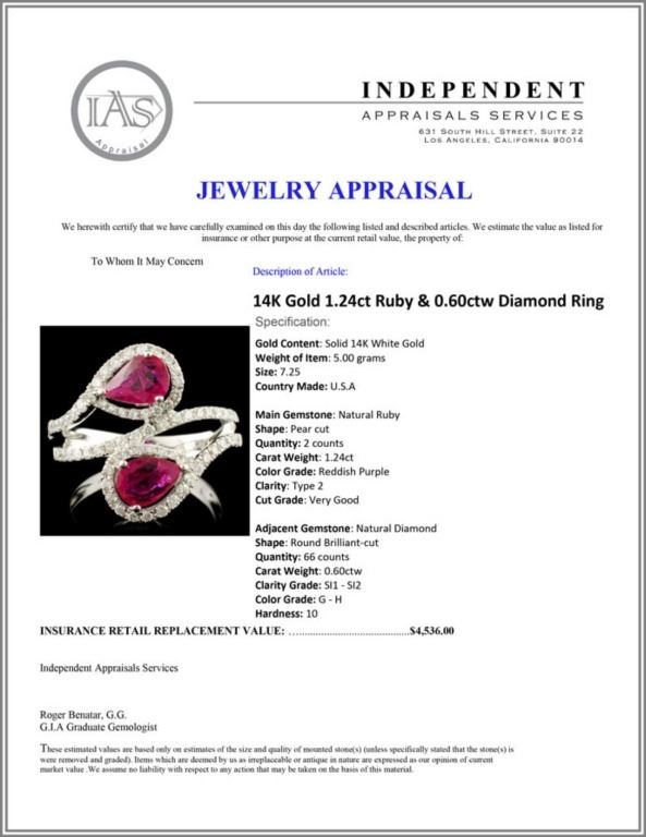Regarding Appraised Jewelry and Loose Stones - Auctionfarm sends them out to a third party for Retail Replacement Value Appraisals, which are the most common. These types of evaluations are written for insurance needs. This would be the cost to replace the jewelry with an item of equal quality and kind, considered to be the current market price or the replacement value. This type of appraisal is done to protect you in the event of damage or loss of a valuable item. Our appraisals are conducted by independent 3rd Party appraisal firms that utilizes Certified GIA Gemologist. Appraisals should be used for verification of gemstone and/or metal weight, size, and grade only, not actual value. Appraisal value should be considered for insurance purposes only, not actual value, as price varies greatly from retail locations thru out the world. Items should not be purchased with the expectation to resell for appraisal price, or for profit.