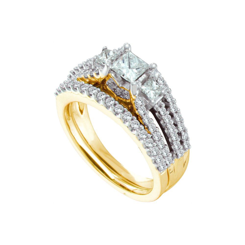 REF-239X9F ---- 1.25 CTW 3-stone Princess Natural Diamond Ring 14K Yellow Gold - SKU: GD29561