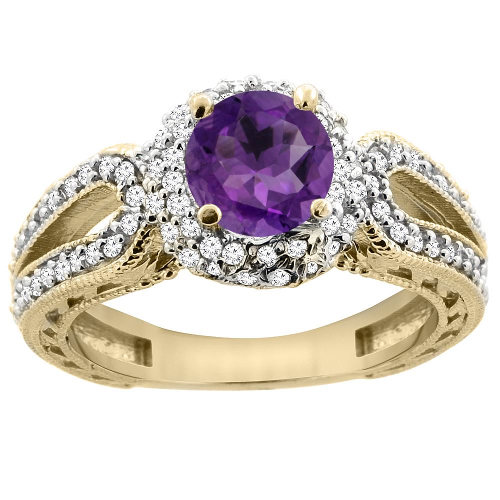 REF-86V7R - SKU: SC-CY401291 ---- 1.25 CTW Amethyst & Diamond Ring 14K Yellow Gold