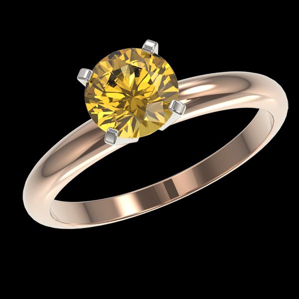 REF-272A8X -32912 ---- 1.25 CTW Certified Intense Yellow SI Diamond Solitaire Ring 10K Rose Gold ---- Luxury Designer Brand Ring Appraised at $18,000 Certificate Number US32912 10k Rose gold, Ring Size is 7, Ring measuring approx. Uniform, weighing in total approx. 2.7 grams. Made in the USA and is stamped 10k, Main stone 1.25 carat total weight containing 1 pieces of Intense Fancy Yellow color with SI quality Round shape cut Diamond , Stone #2 carat total weight containing pieces of color with quality shape cut