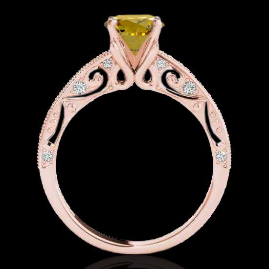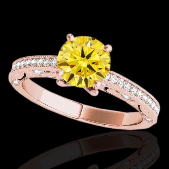 1.25 CTW Certified Si Intense Yellow Diamond Solitaire Antique Ring 10K Rose Gold ---- Luxury Designer Brand Ring Appraised Retail Price at $10,800 ---- SKU Number US34746 10k Rose gold Ring Size is 7, Ring measuring approx. Uniform, weighing in total approx. 4 grams. Made in the USA and is stamped 10k, Main stone 1.00 carat total weight containing 1 pieces of Intense Fancy Yellow color with SI quality Round shape cut Diamond , Stone #2 0.25 carat total weight containing 36 pieces of H-I color with VS/SI quality Round shape cut