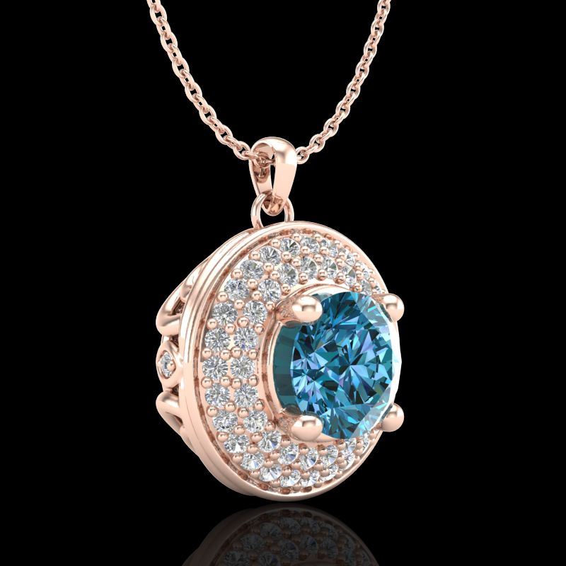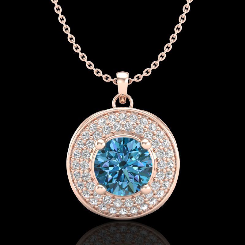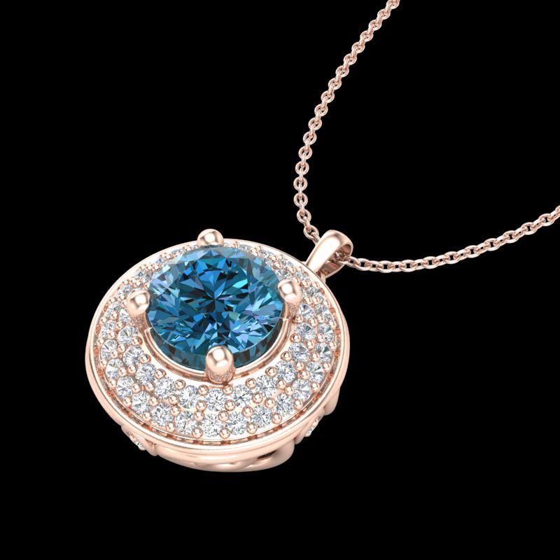 1.25 CTW Fancy Intense Blue Diamond Solitaire Art Deco Necklace 18K Rose Gold ---- Luxury Designer Brand NECKLACE Appraised Retail Price at $9,800 ---- SKU Number US38140 18k Rose gold NECKLACE Size is 16 Inches, NECKLACE measuring approx. Uniform, weighing in total approx. 4.5 grams. Made in the USA and is stamped 18k, Main stone 0.83 carat total weight containing 1 pieces of Intense Fancy Blue color with SI quality Round shape cut Diamond , Stone #2 0.42 carat total weight containing 53 pieces of H-I color with VS/SI quality Round shape cut