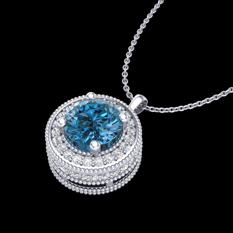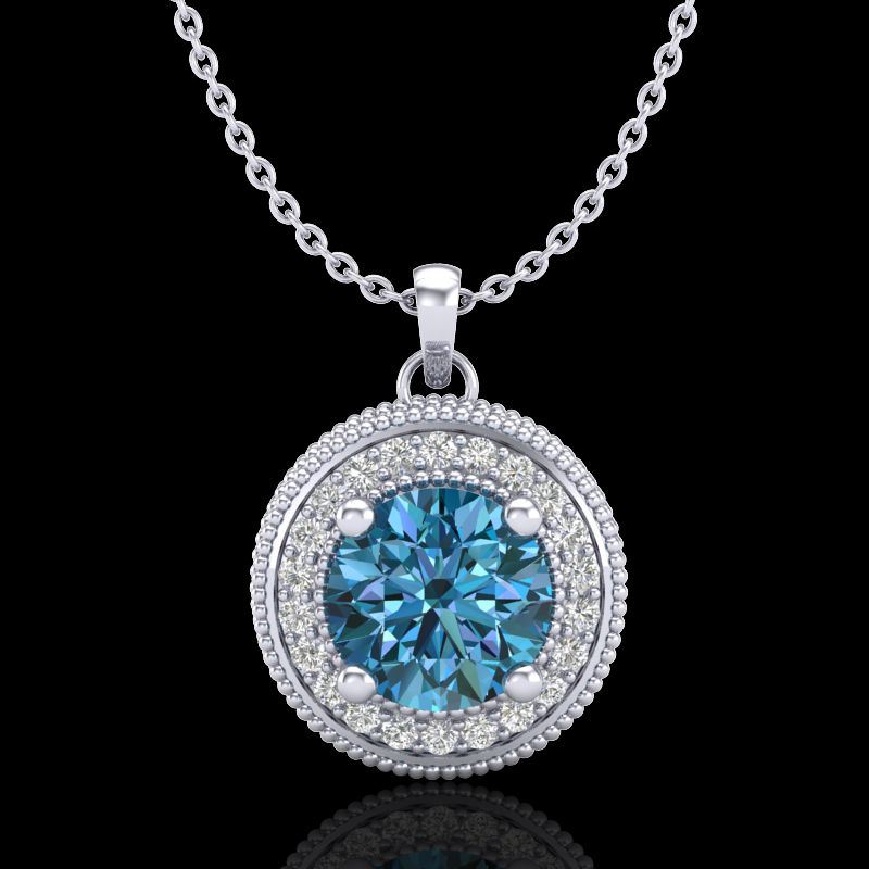 REF-132W8F -38020 ---- 1.25 CTW Fancy Intense Blue Diamond Solitaire Art Deco Necklace 18K White Gold ---- Luxury Designer Brand NECKLACE Appraised at $8,750 Certificate Number US38020 18k White gold, NECKLACE Size is 16 Inches, NECKLACE measuring approx. Uniform, weighing in total approx. 5.3 grams. Made in the USA and is stamped 18k, Main stone 0.77 carat total weight containing 1 pieces of Intense Fancy Blue color with SI quality Round shape cut Diamond , Stone #2 0.48 carat total weight containing 48 pieces of H-I color with VS/SI quality Round shape cut Diamond