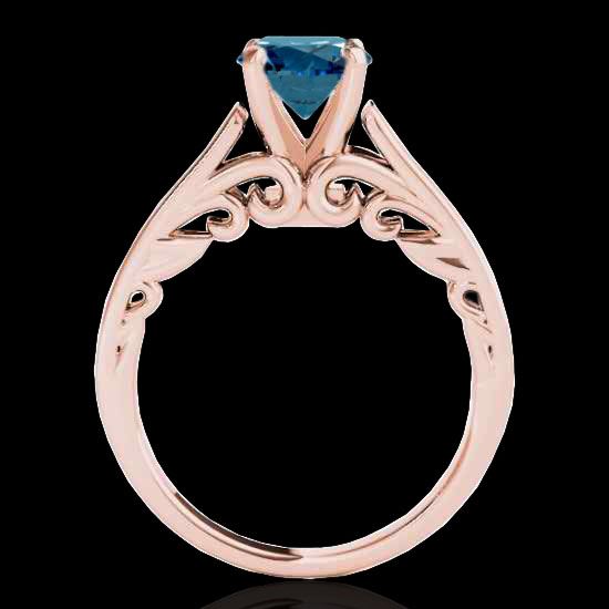 1.25 CTW SI Certified Fancy Blue Diamond Solitaire Ring 10K Rose Gold ---- Luxury Designer Brand Ring Appraised Retail Price at $10,900 ---- SKU Number US35152 10k Rose gold Ring Size is 7, Ring measuring approx. Uniform, weighing in total approx. 4.3 grams. Made in the USA and is stamped 10k, Main stone 1.25 carat total weight containing 1 pieces of Intense Fancy Blue color with SI quality Round shape cut Diamond , Stone #2 carat total weight containing pieces of color with quality shape cut