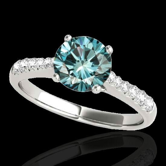1.25 CTW SI Certified Fancy Blue Diamond Solitaire Ring 10K White Gold ---- Luxury Designer Brand Ring Appraised Retail Price at $9,450 ---- SKU Number US34824 10k White gold Ring Size is 7, Ring measuring approx. Uniform, weighing in total approx. 3.6 grams. Made in the USA and is stamped 10k, Main stone 1.00 carat total weight containing 1 pieces of Intense Fancy Blue color with SI quality Round shape cut Diamond , Stone #2 0.25 carat total weight containing 12 pieces of H-I color with VS/SI quality Round shape cut