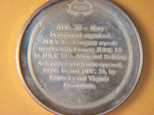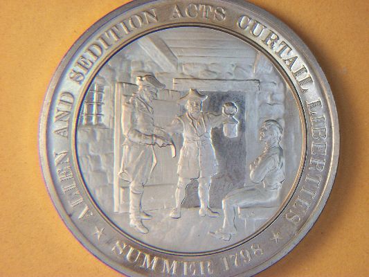 1.25 OUNCE BRONZE 1798 ALLEN AND SEDITION ACTS CURTAILS LIBERTIES