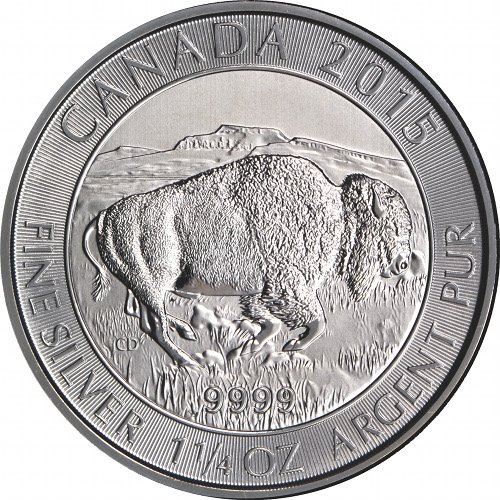 1.25 OZ .9999 Fine Silver, $8 Canadian Bison Coin, 2015. 1 1/4 Ounce Fine Silver.