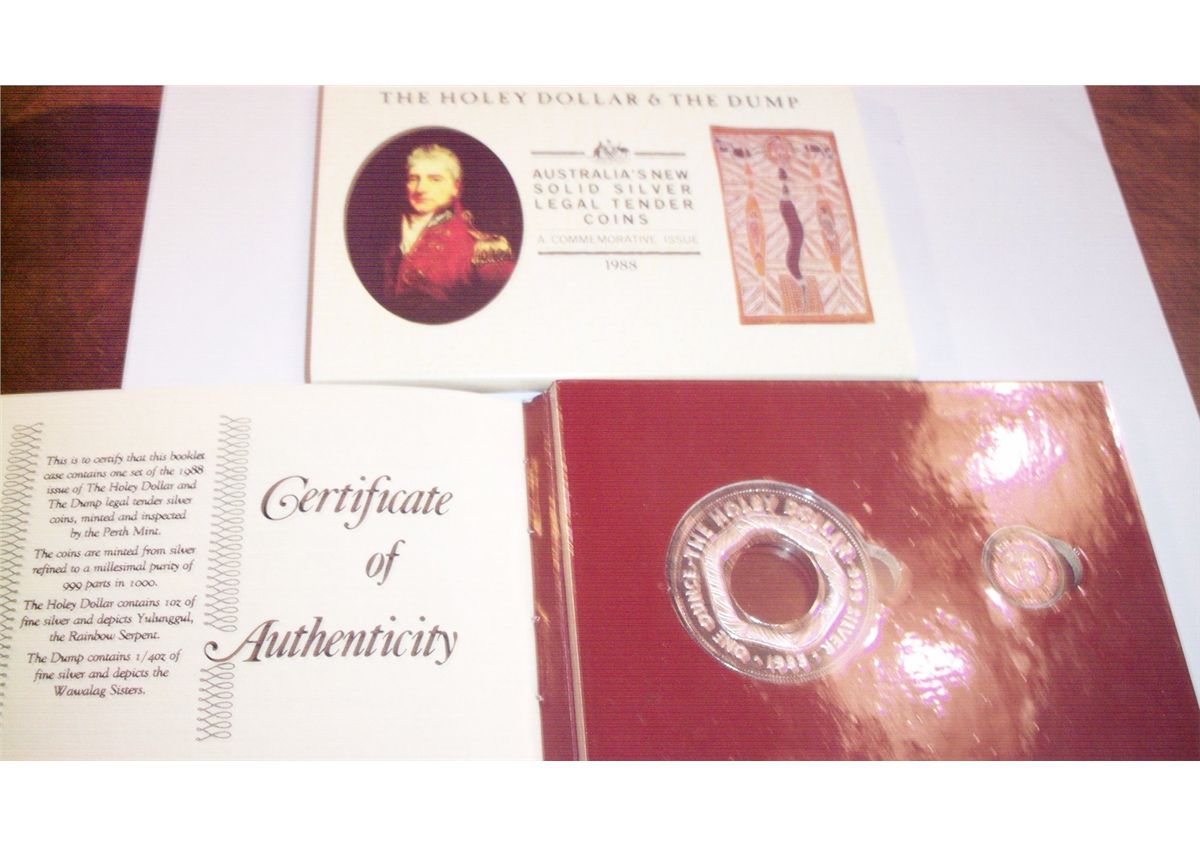 1.25 OZ PURE SILVER AUSTRALIA 1988 HOLEY DOLLAR & THE DUMP SET LEGAL TENDER COINS
