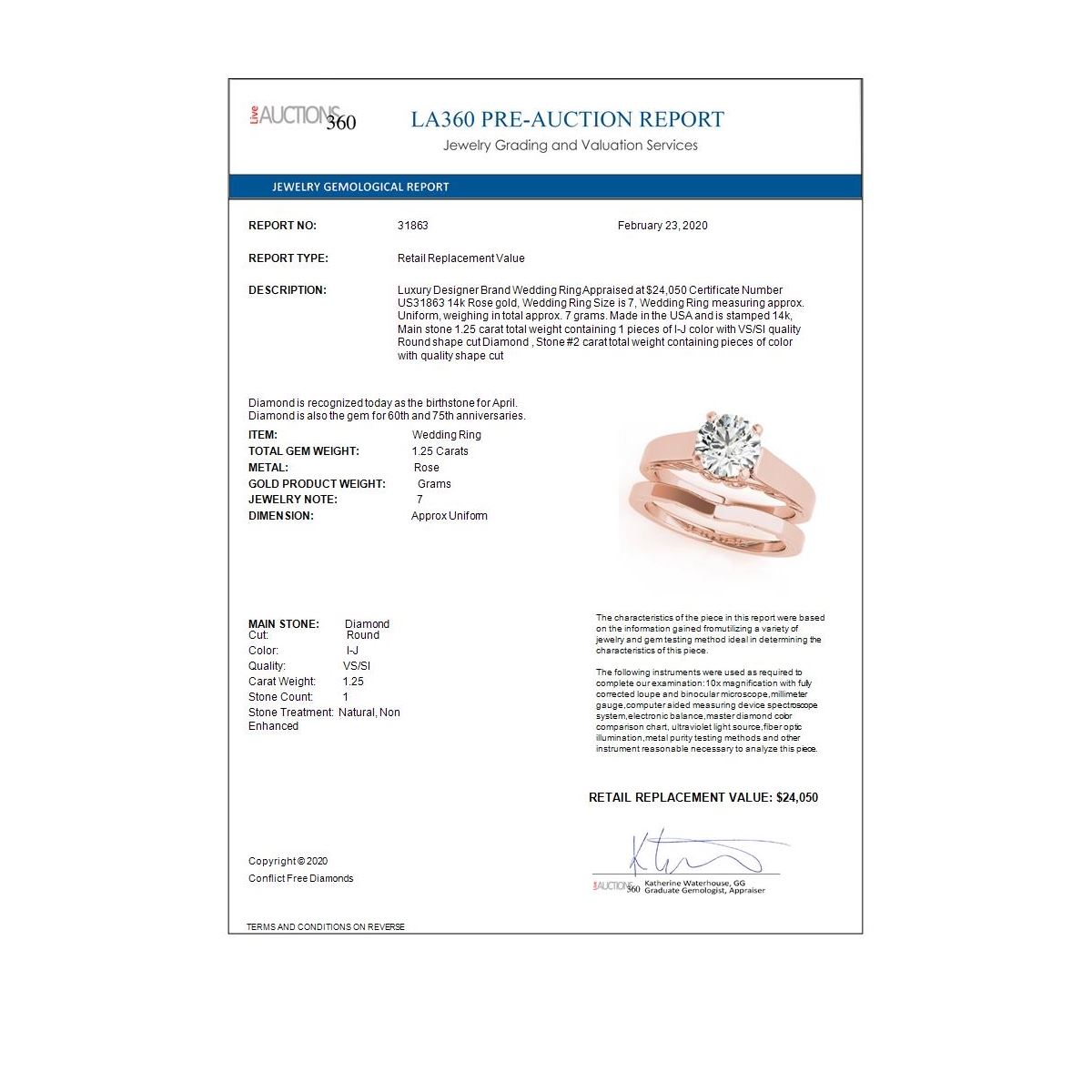 Total Gem weight: 1.25 carats