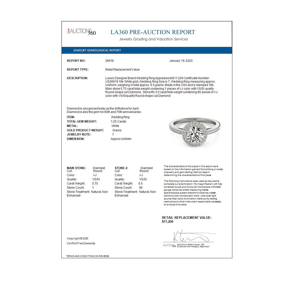 REF-170M2G - SKU: 26919 ---- 1.25 ctw Certified VS/SI Diamond Halo Ring 18k White Gold