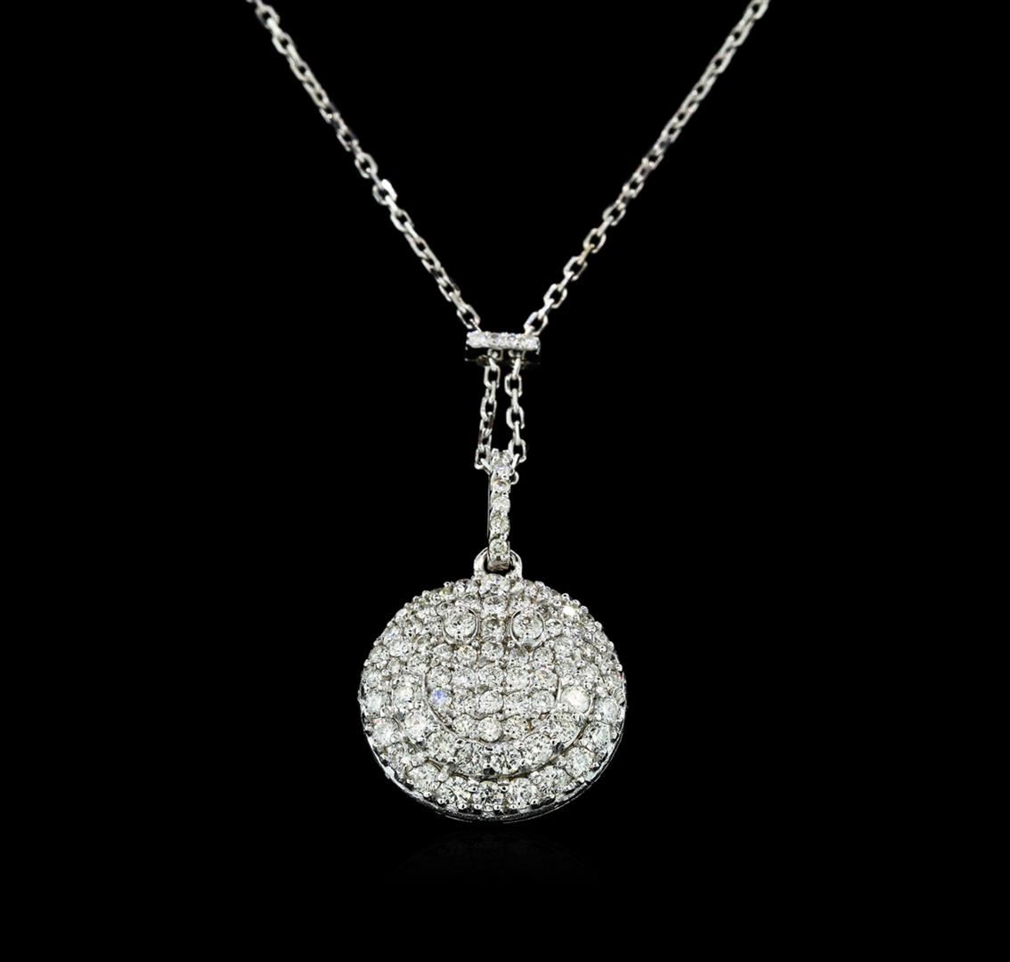 One electronically tested 14KT yellow gold lady's combination cast & assembled lariat necklace with a lobster claw clasp with a bright polish finish. The featured lady's necklace has a smiley face motif and an attached 18 inch long 1.2 millimeter diamond cut cable link chain. Identified with markings of 'K14'. Condition is new, good workmanship. Containing: Twenty-Two prong set round brilliant cut diamonds, measuring 2.00 - 1.90 x 1.21mm (depth est.) approximate total weight of 22 Stones = 0.62ct. Graded in the setting. Clarity SI-1 to SI-3. Color: G - H Cut Good Fifty prong set round brilliant cut diamonds, measuring 1.55 - 1.40 x 0.89mm (depth est.) approximate total weight of 50 Stones = 0.56ct. Graded in the setting. Clarity SI-1 to SI-2. Color: G - I Cut Good Ten prong set round brilliant cut diamonds, measuring 1.20 - 1.00 x 0.68mm (depth est.) approximate total weight of 10 Stones = 0.07ct. Graded in the setting. Clarity SI-1 to SI-2. Color: H - I Cut Good. Total Weight of Diamonds 1.25ct.. Total Weight of Necklace 6.70gm GAS Appraised at $4,500.00.