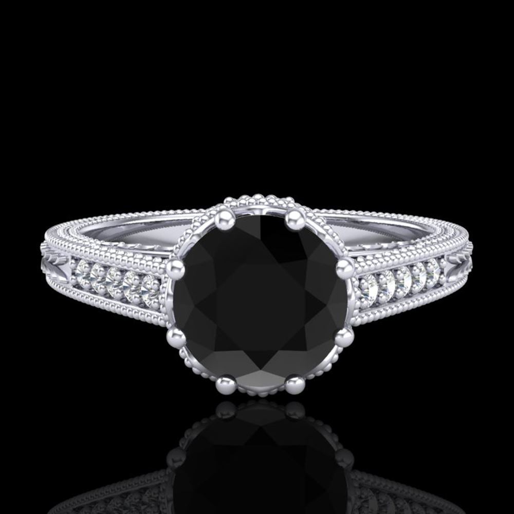 REF-100A2N - SKU: 37520 ---- 1.25 ctw Fancy Black Diamond Engagment Art Deco Ring 18k White Gold