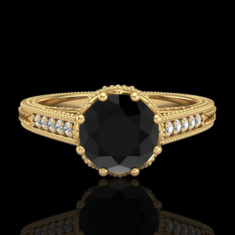REF-100G2W - SKU: 37522 ---- 1.25 ctw Fancy Black Diamond Engagment Art Deco Ring 18k Yellow Gold