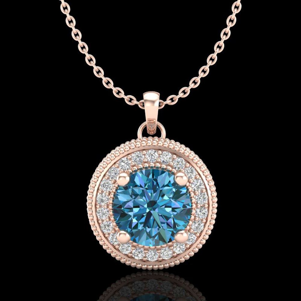 REF-132W8H - SKU: 38021 ---- 1.25 ctw Fancy Intense Blue Diamond Art Deco Necklace 18k Rose Gold