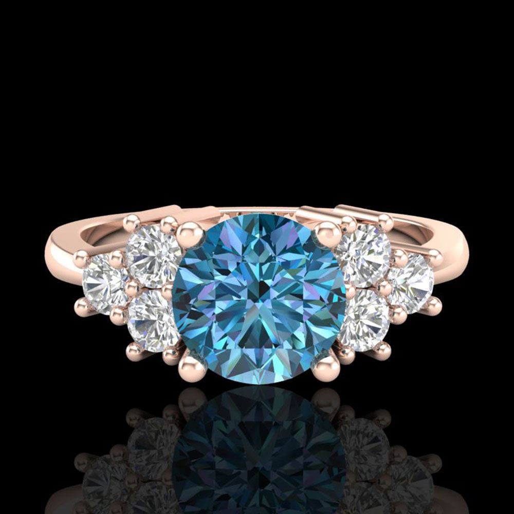 REF-209W3H - SKU: 37888 ---- 1.25 ctw Fancy Intense Blue Diamond Art Deco Ring 18k Rose Gold