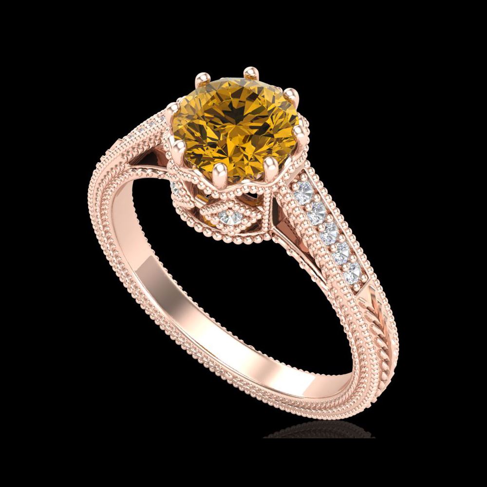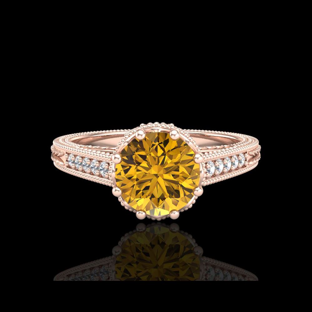 1.25 ctw Intense Fancy Yellow Diamond Art Deco Ring 18K Rose Gold