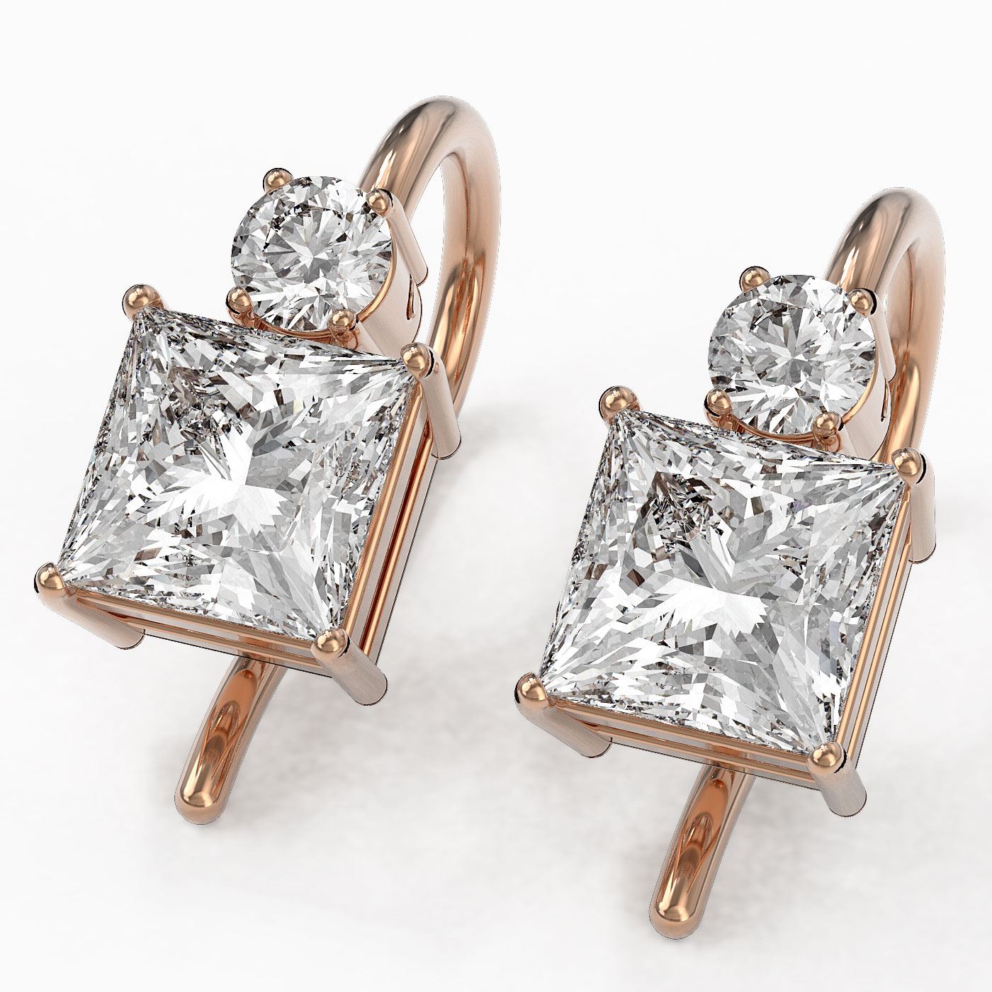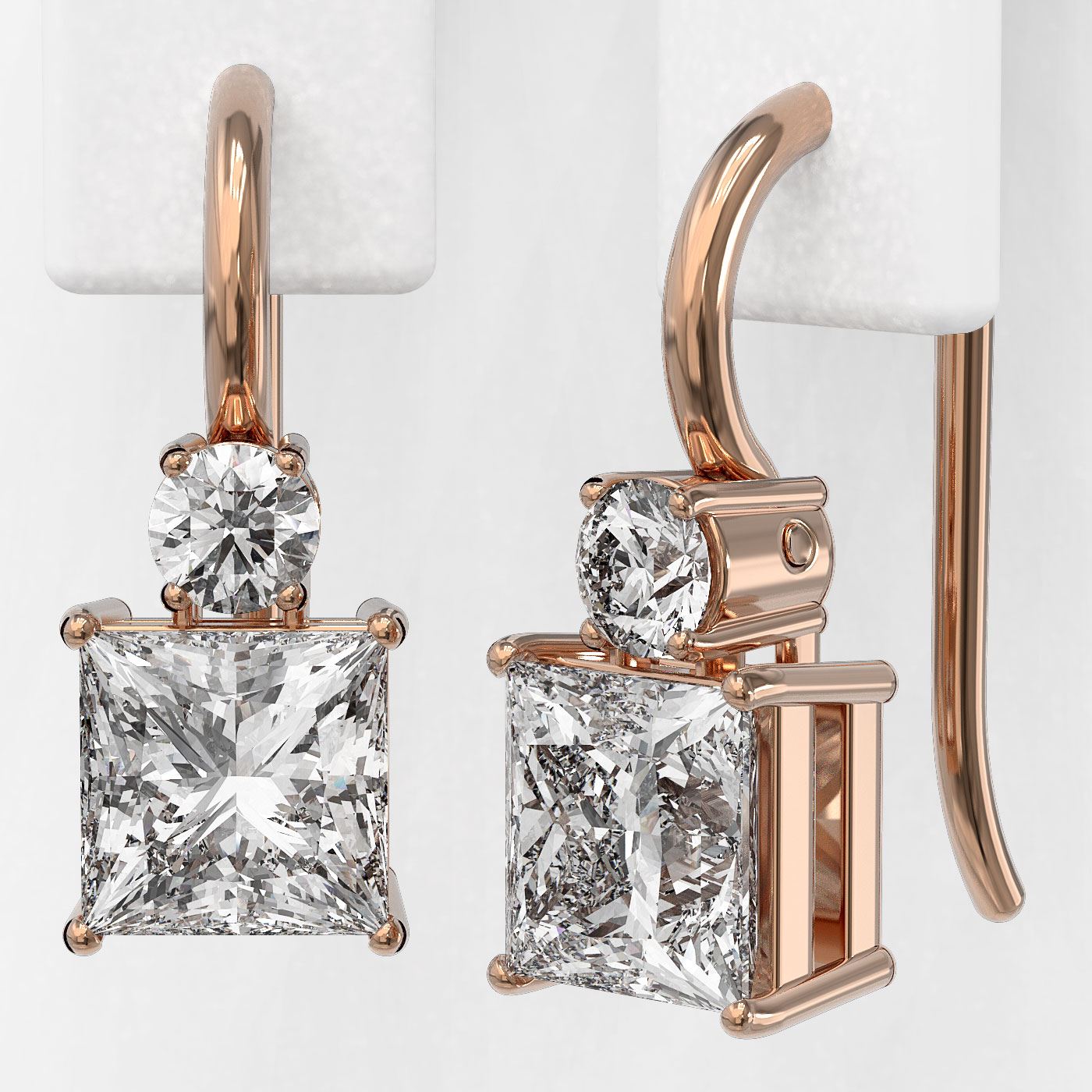 REF-170A2N - SKU: 48466 ---- 1.25 ctw Princess Cut Diamond Designer Earrings 18K Rose Gold
