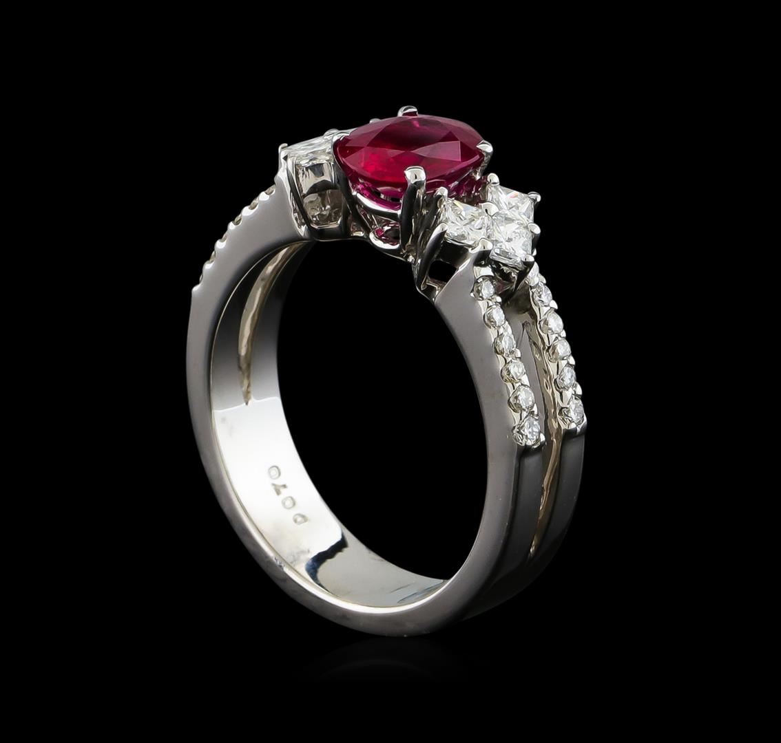 One ring featuring: 18KT white gold weighing approximately 6.98 grams containing one ruby with a total weight of 1.25ct and diamonds with a total weight of 0.70ct.