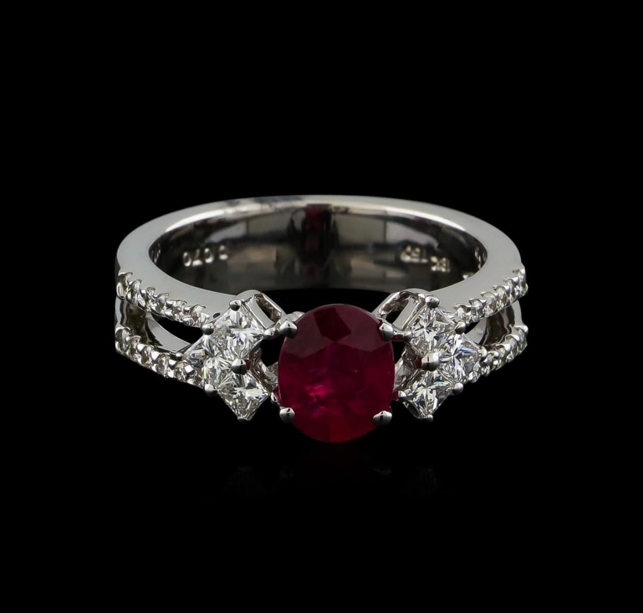 One ring featuring: 18KT white gold weighing approximately 6.98 grams containing one ruby with a total weight of 1.25ct and diamonds with a total weight of 0.70ct.