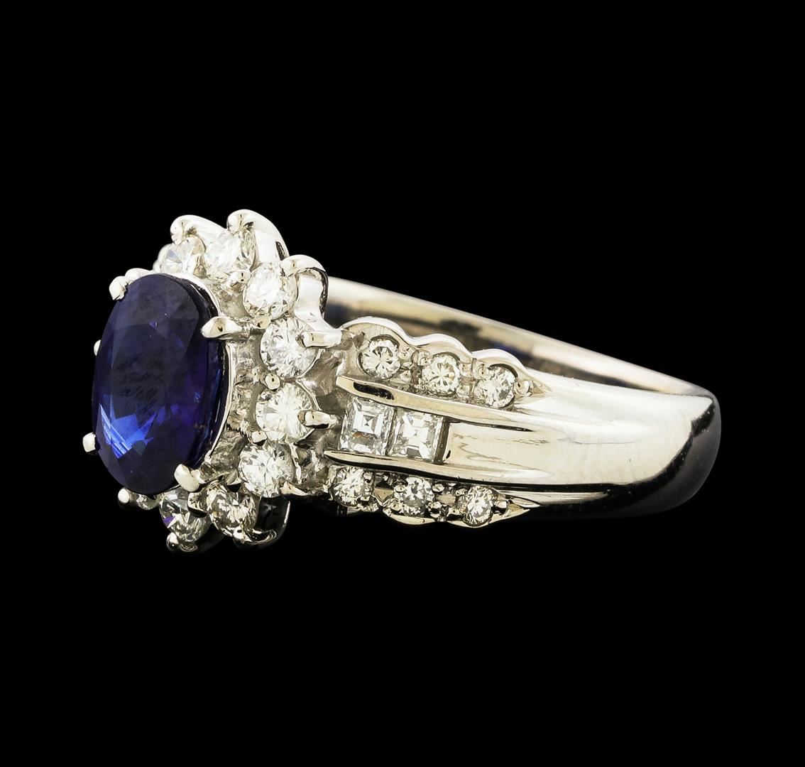 One ring featuring: Platinum containing Sapphire with a total weight of 1.25ct and Diamonds with a total weight of 0.67ct. Total Weight of Ring: 8.1 grams.