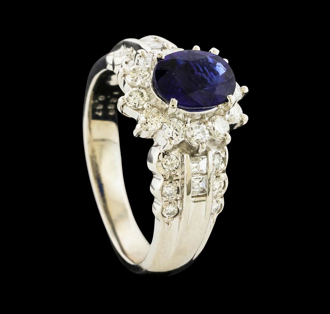 One ring featuring: Platinum containing Sapphire with a total weight of 1.25ct and Diamonds with a total weight of 0.67ct. Total Weight of Ring: 8.1 grams.