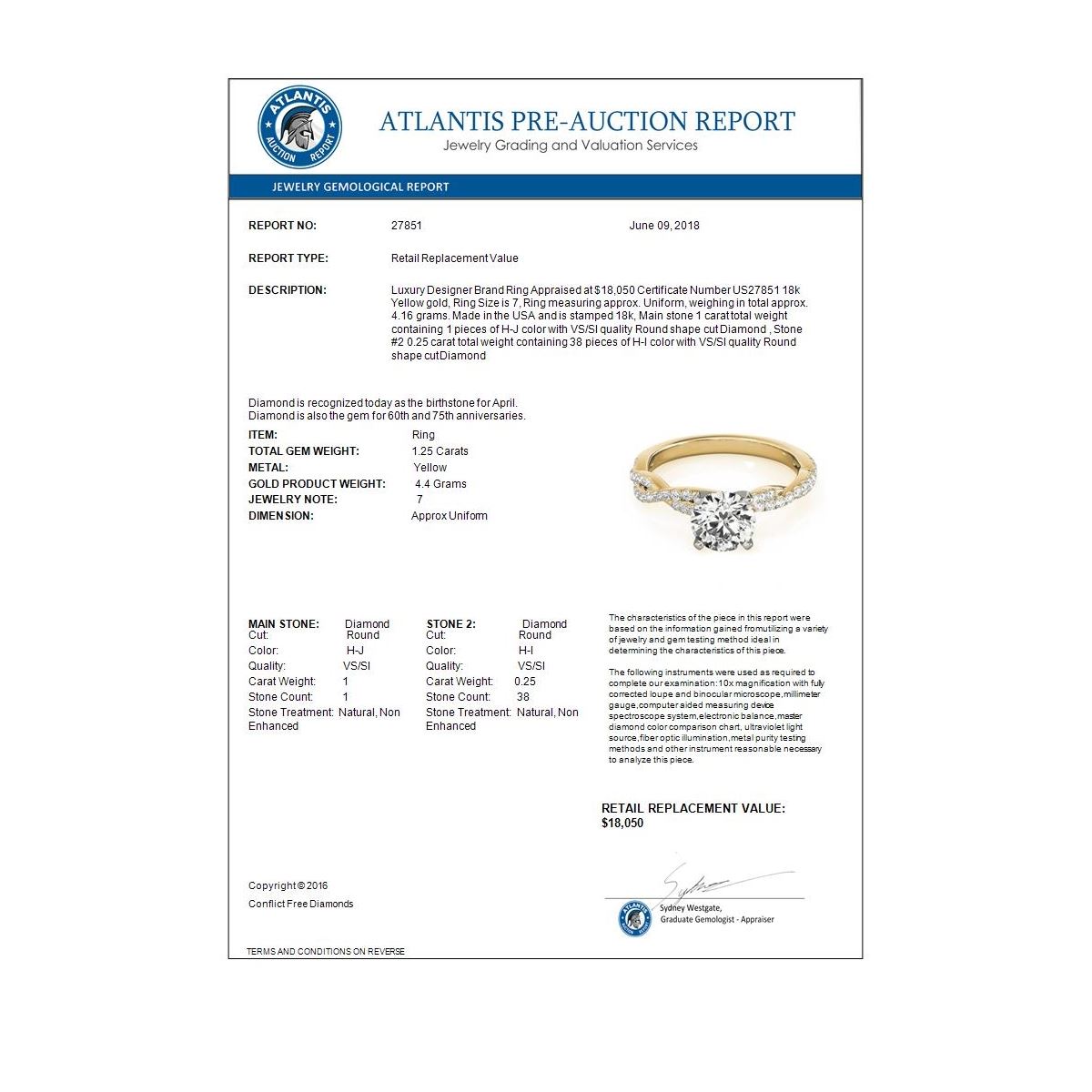 Total Gem weight: 1.25 carats