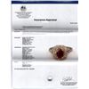 Fourteen karat (14K) two tone gold ruby and diamond ring. An oval cut ruby gemstone is prong mounted in the center of the ring. Round brilliant cut diamonds accent the ring on both sides of the center gemstone. The ring is cast stamped "14K" and has a gross weight of 5.03 Grams. Diamond(s): Shape: Round Brilliant Cut. Weight: 0.55 carat. Average Clarity: SI2-SI3. Average Color: H. Symmetry: Very Good. Polish: Very Good. Fluorescence: None. GemStone(s): GemStone: Ruby Corundum. Nature: Natural. Shape: Oval, Faceted. Quantity: 1, Mounted. Weight: 1.25 carat. Bulge: Visible. Clarity: SI2, Type 3. Color: Red. Symmetry: Very Good. Color Intensity: Medium. Transparency: Translucent. Tone: Medium to Dark. Metal(s): Metal: Gold, Stamped. Purity: 14K. Color: Two Tone. Condition: Excellent. Finish: High polish. GGA Appraised at $16,220.00.